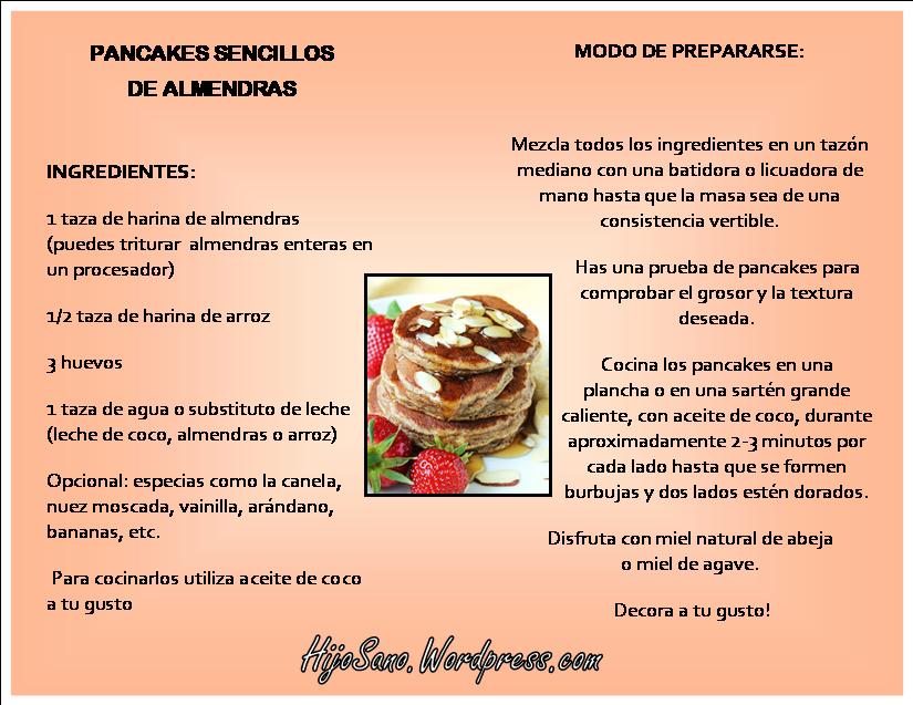 PANCAKES SENCILLOS DE ALMENDRAS Escrito por Judith en Recetas sin Gluten, Caseina ni Soya y etiquetada con Dieta Autista, HijoSano.com, https://www.facebook.com/HijoSano, pancakes, Pancakes de Almendras, Recetas sin Gluten Caseina ni Soya 15 agosto, 2013 Pancakes por las mañanas… sin excusa! Comparte esto: Compartir en X (Se abre en una ventana nueva) X Comparte en Facebook (Se abre en una ventana nueva) Facebook Me gusta Cargando... Relacionado